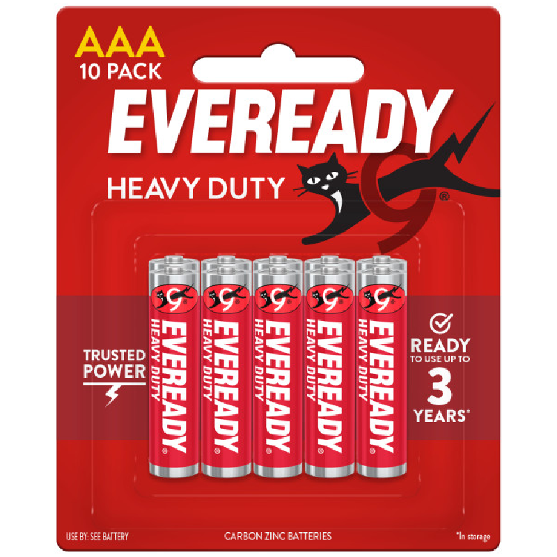 Use Eveready to power your everyday devices. Eveready® Heavy Duty AAA batteries provide Trusted Power and are ready to use up to 3 year in storage. Use Eveready to power the devices you use each day.