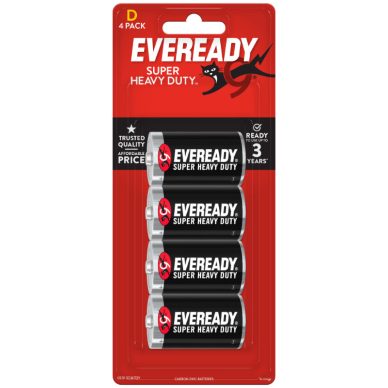 EVEREADY® SUPER HEAVY DUTY™ is the affordable Carbon Zinc solution that provides power for you and your family’s basic power needs. EVEREADY® SUPER HEAVY DUTY™ brand offers a complete line of AA, AAA, C, D, 9V and 6V lantern batteries and are an economical choice for clocks, flashlights, radios and other devices that are low drain. Since 1896, Eveready batteries have been providing dependable portable power. For every family, everywhere, every day. Eveready for Life.