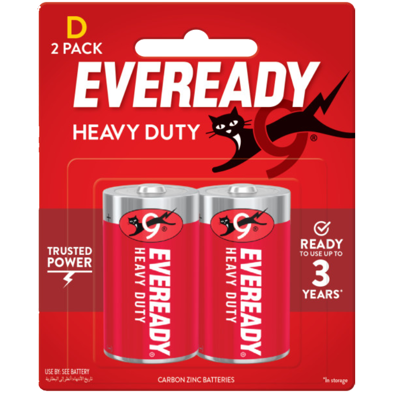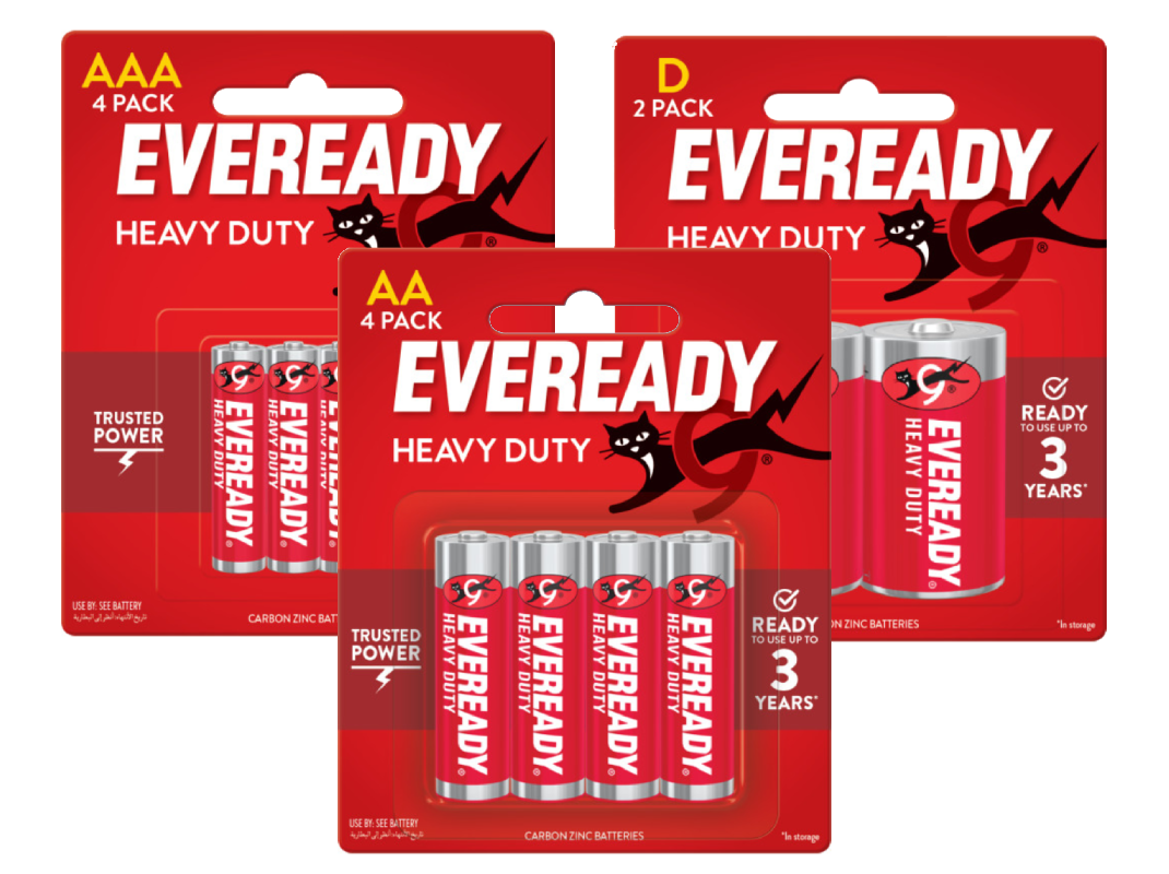 EVEREADY® Heavy Duty batteries provide Trusted Power and are ready to use up to 3 year in storage.