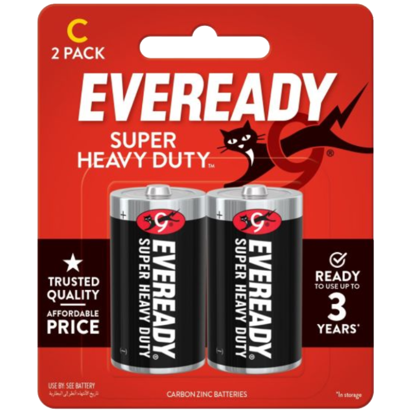 - 2-pack of Eveready® Super Heavy Duty™ C batteries, Carbon Zinc