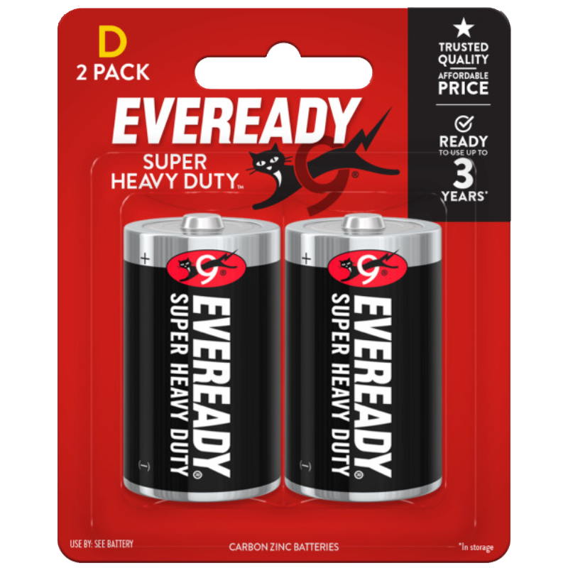 - Eveready® Super Heavy Duty™ Carbon Zinc D Battery, 2 pack