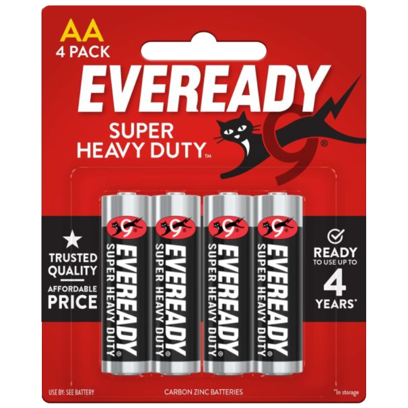 - 4-pack of Eveready® Super Heavy Duty™ AA batteries, Carbon Zinc