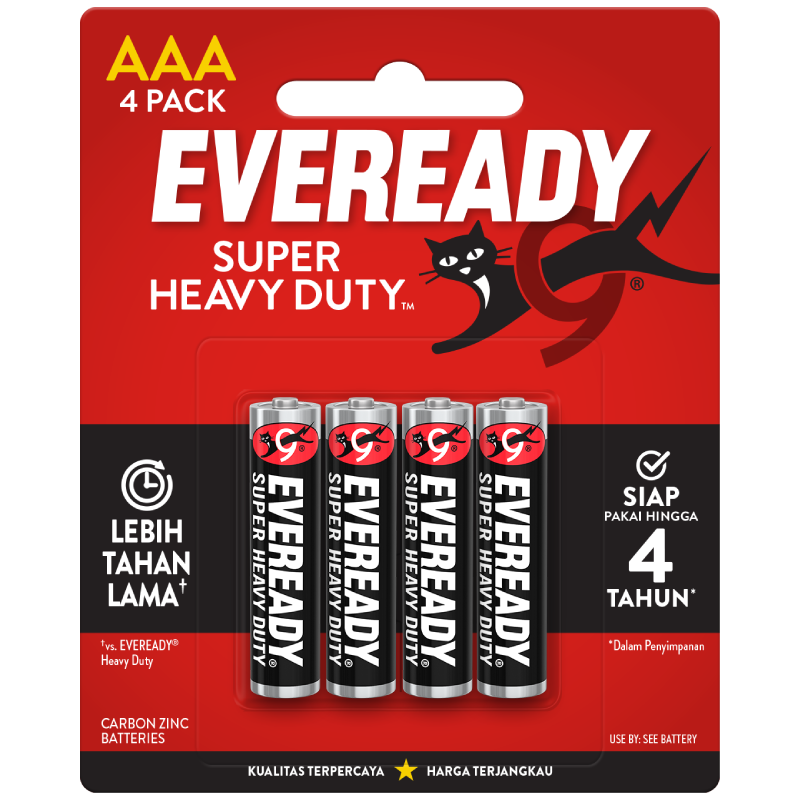 - 4-pack of Eveready® Super Heavy Duty™ AAA batteries, Carbon Zinc