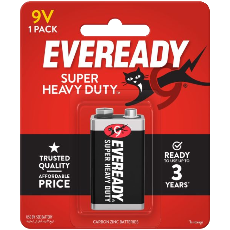 - Eveready® Super Heavy Duty™ Carbon Zinc Battery 9 Volt, 1 pack