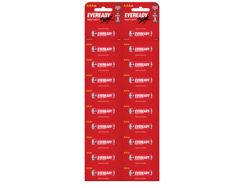 Use Eveready to power your everyday devices. Eveready® Heavy Duty AAA batteries provide Trusted Power and are ready to use up to 3 year in storage. Use Eveready to power the devices you use each day.