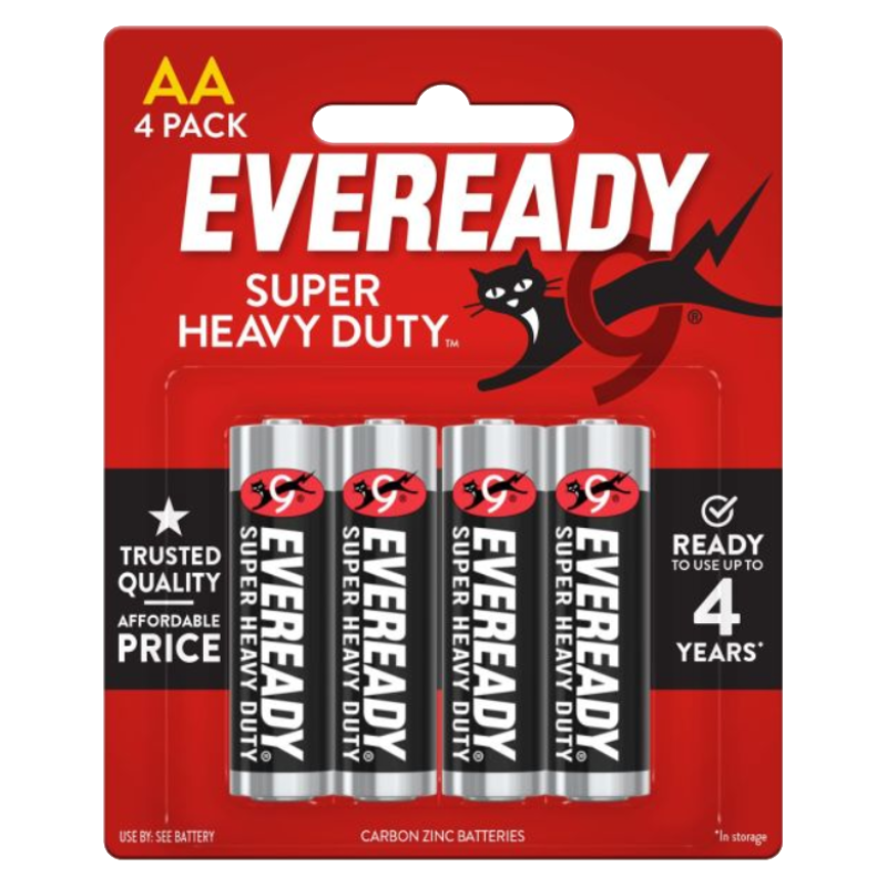 - 4-pack of Eveready® Super Heavy Duty™ AA batteries, Carbon Zinc
