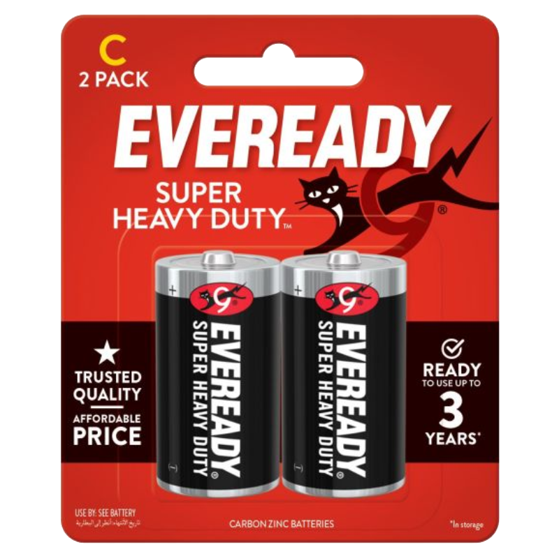 - 2-pack of Eveready® Super Heavy Duty™ C batteries, Carbon Zinc