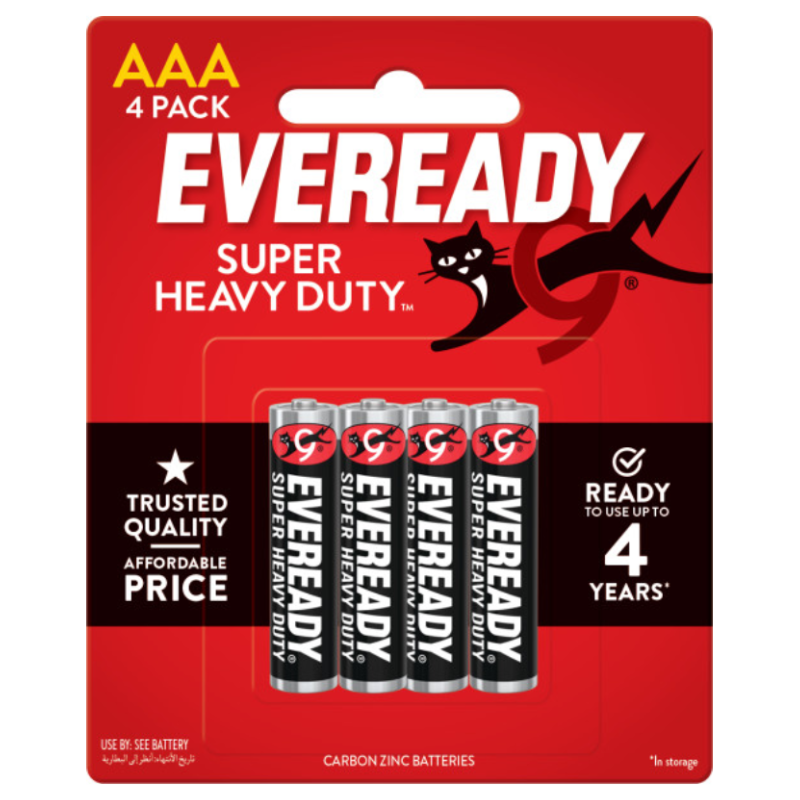 - 4-pack of EVEREADY SUPER HEAVY DUTY AAA batteries, Carbon Zinc