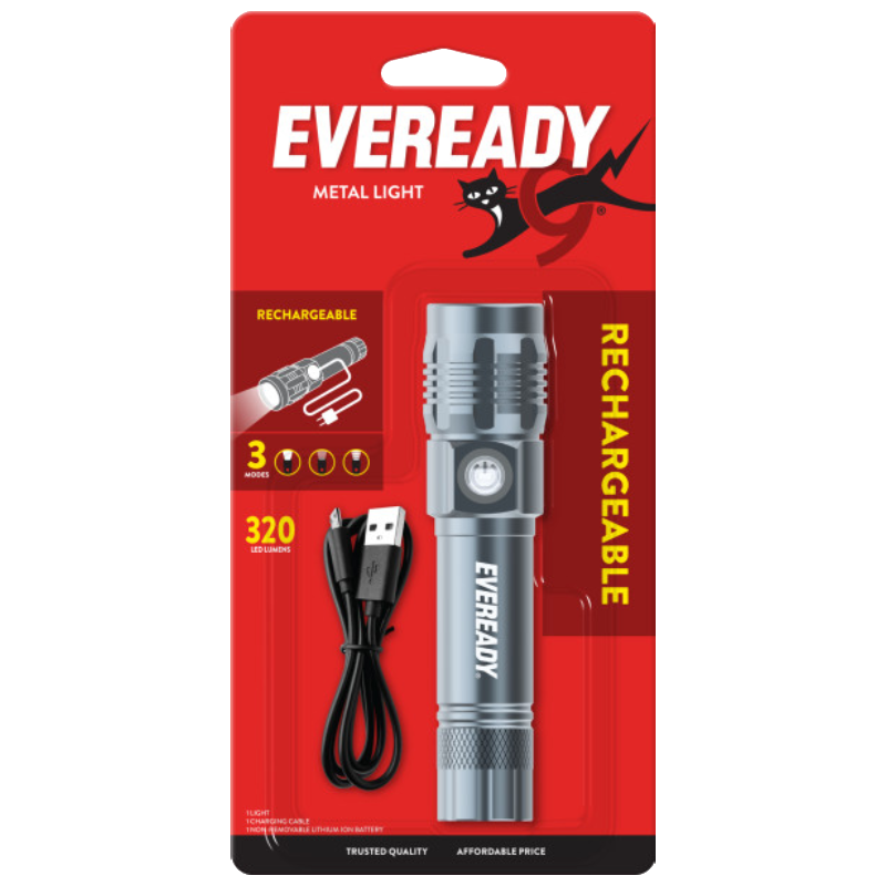 Our Metal Rechargeable Flashlight is a smart portable flashlight to have around. This flashlight has a durable aluminum body and comes with a rechargeable 18650 battery and a Micro-USB charging cable, it can be recharged directly by a power bank, car charger or other USB power source once it runs out – no need to buy extra batteries. With 3 mode options (high, low, strobe), this light is perfect for camping, hiking, fishing, dog walking, power outages, and emergencies. Lanyard included for easy carrying.
