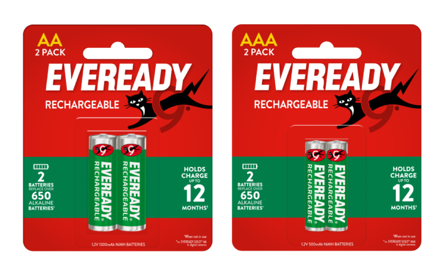 EVEREADY® rechargeable batteries can replace hundreds of alkaline batteries and are your choice for rechargeable NiMH power.