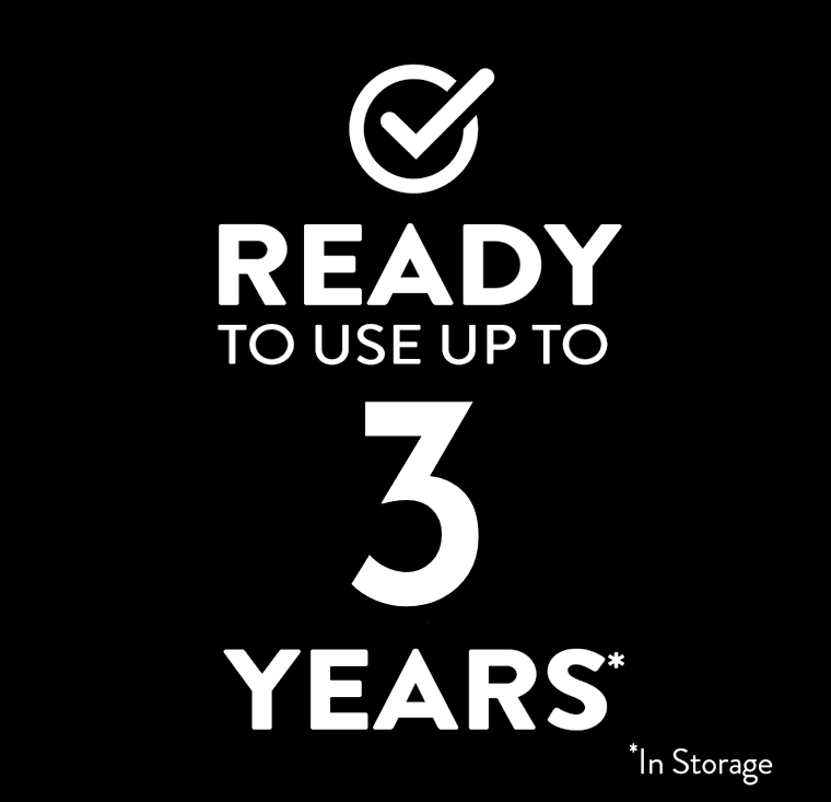 - Ready to use for up to 3 Years when not in use