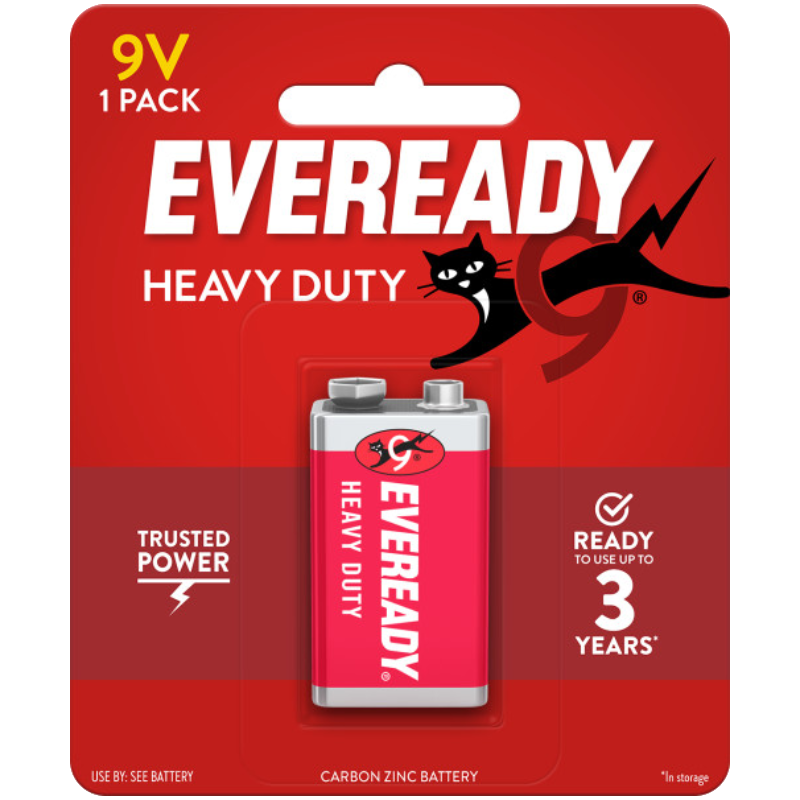 - Pin Eveready® Heavy Duty 9V sẵn sàng sử dụng sau khi bảo quản đến 3 năm
