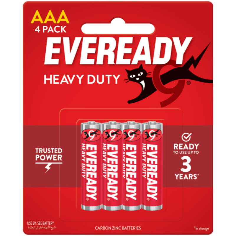 - Vỉ 4 viên pin Eveready® Heavy Duty AAA, Carbon-Kẽm