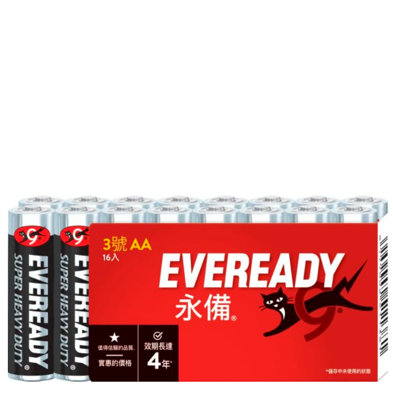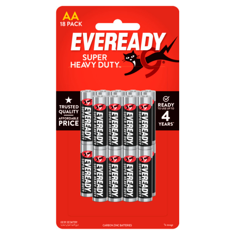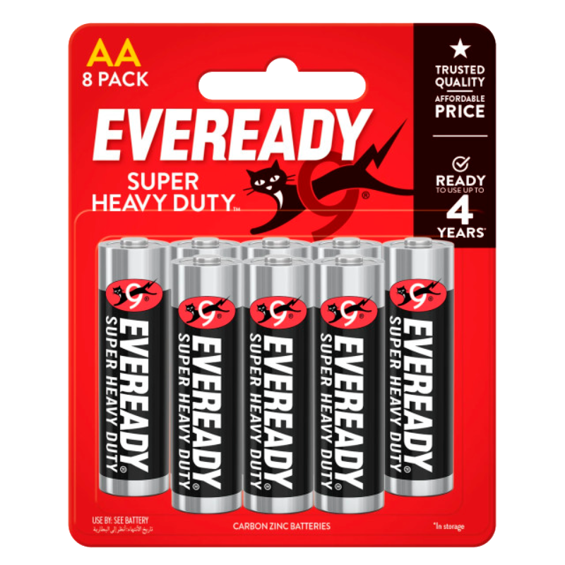 Hãy sử dụng Eveready® để cung cấp năng lượng cho các thiết bị hàng ngày của bạn. Pin AA Eveready® Super Heavy Duty™ mang đến chất lượng đáng tin cậy với mức giá phải chăng. Pin được trang bị thiết kế chống rò rỉ và sẵn sàng sử dụng sau khi bảo quản đến 4 năm. Hãy sử dụng Eveready® để cung cấp năng lượng cho những thiết bị bạn dùng mỗi ngày.