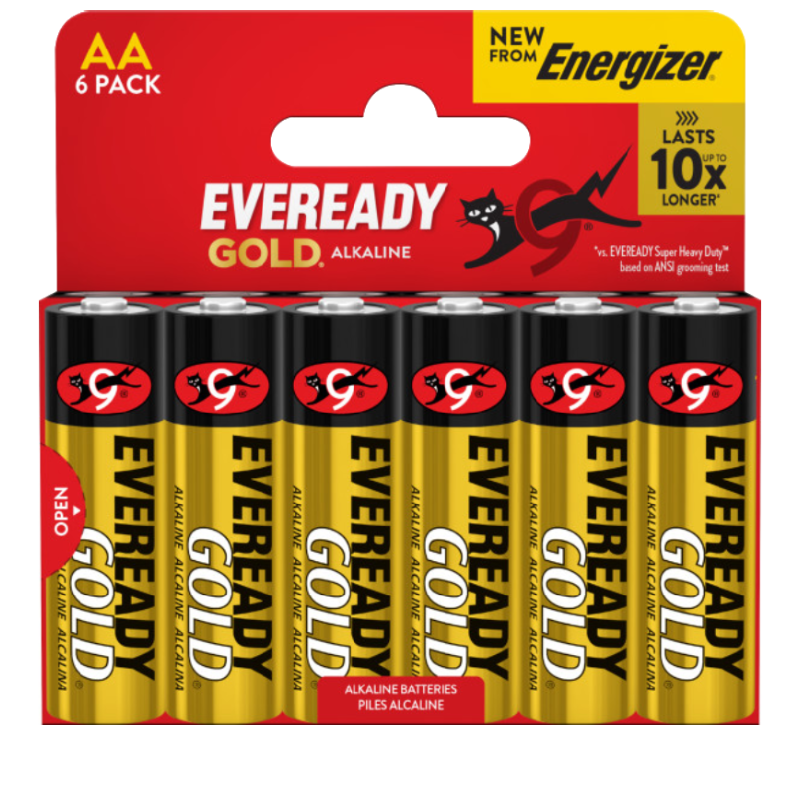 Eveready Gold® is het alkalinebatterijtype, een van de meest gangbare batterijchemieën voor huishoudelijke apparaten. De “Gold”-lijn van Eveready®-batterijen is ontworpen om betrouwbare energie te leveren tegen een budgetvriendelijke prijs. Ze zijn overal verkrijgbaar in verschillende formaten, waaronder AA, AAA, C, D en 9V, waardoor ze compatibel zijn met diverse apparaten. De Gold-serie van Eveready® staat bekend om haar consistente, langdurige prestaties, waardoor ze een uitstekende keuze zijn voor dagelijkse toepassingen zoals speelgoed, klokken, zaklampen en afstandsbedieningen. Ze bieden een uitstekende balans tussen prijs en vermogen, wat ze een aantrekkelijke optie maakt voor kostenbewuste consumenten.