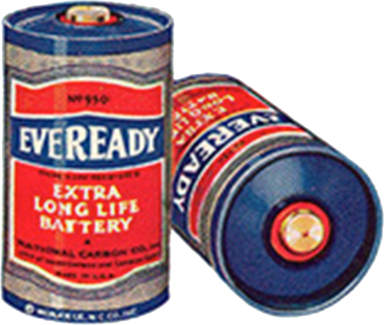 Eveready Battery Company opracowuje pierwszą komercyjną baterię alkaliczną o kształcie cylindrycznym. Inne pionierskie osiągnięcia to miniaturowe baterie do aparatów słuchowych, bateria 9 V oraz pierwsze baterie do zegarków.