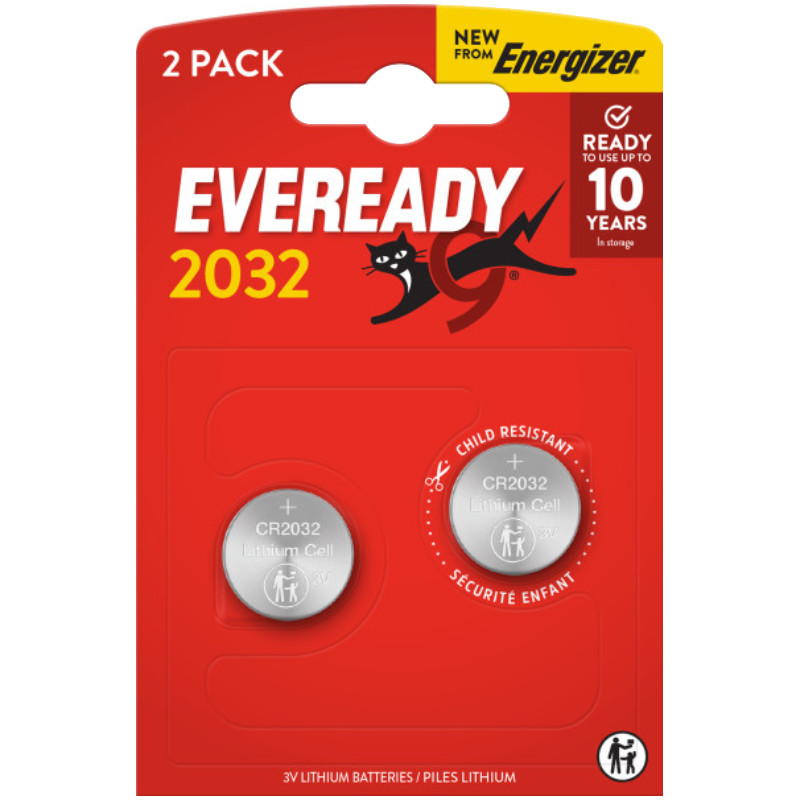 - Pack de 2 pila de botón de litio EVEREADY® CR2032.