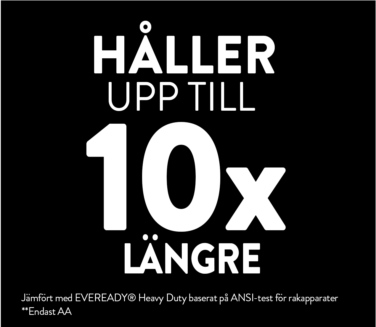 - Håller upp till 10x längre** (AA)