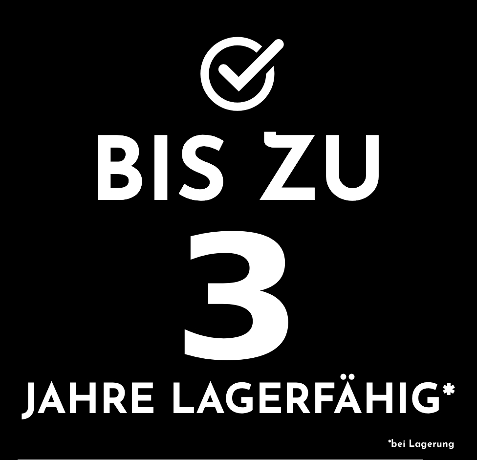 • Bis zu 3 Jahre lagerfähig bei Lagerung