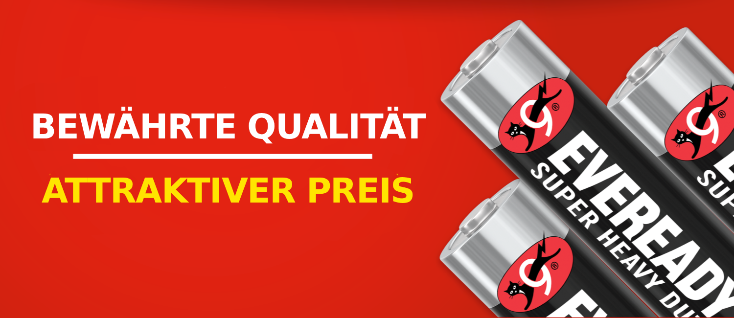 • Der EVEREADY® Super Heavy Duty™ Vorteil: Bewährte Qualität und ein attraktiver Preis für Familien und preisbewusste Kunden