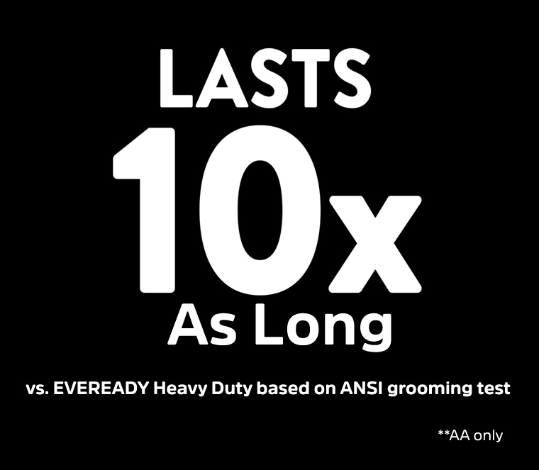 **vs. EVEREADY® Super Heavy Duty™ based on ANSI grooming test;