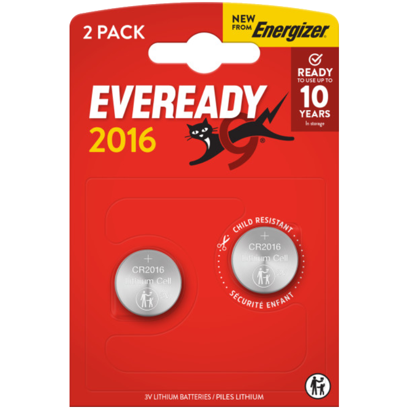 - 2 pack of EVEREADY CR2016 Lithium coin batteries