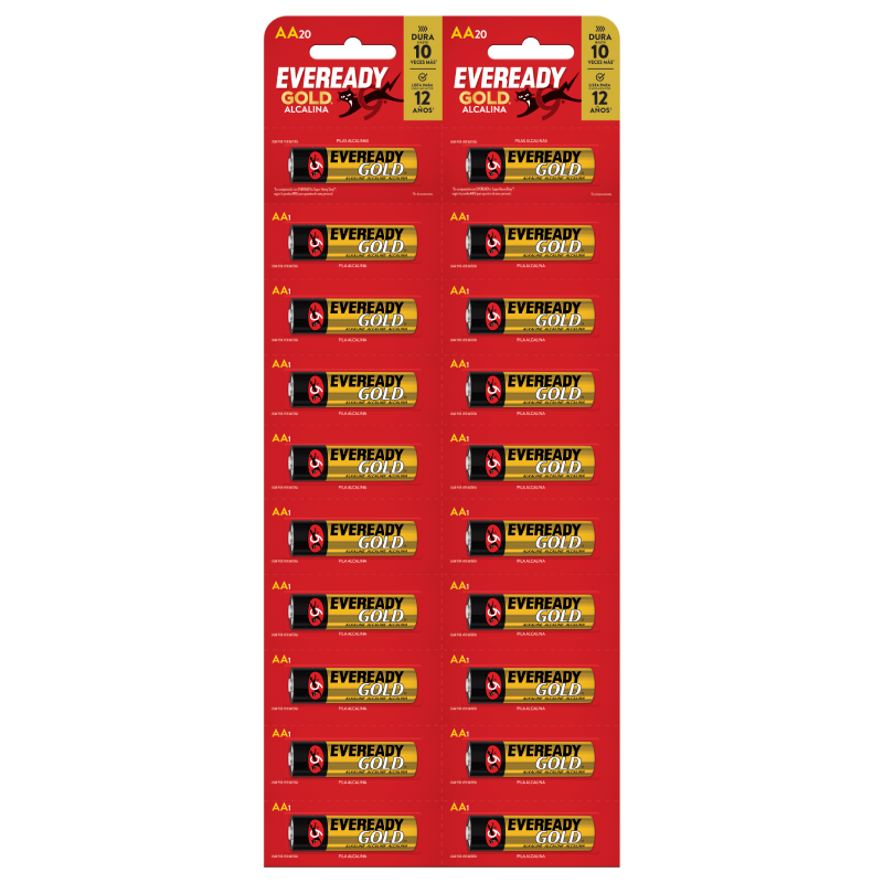 ¿Sin energía? Vos no. Abastecete de la batería que siempre ha sido confiable y siempre está lista: EVEREADY GOLD®. Las baterías EVEREADY GOLD® vienen con un Sello de Calidad para brindarte energía en la que podés confiar. Eso significa que mantienen funcionando los dispositivos favoritos de tu familia. Las baterías EVEREADY GOLD® son la combinación perfecta para dispositivos de bajo a medio consumo como controles remotos, calculadoras y juguetes. ¿Tenés algunos en casa? Obtené EVEREADY® para la vida.