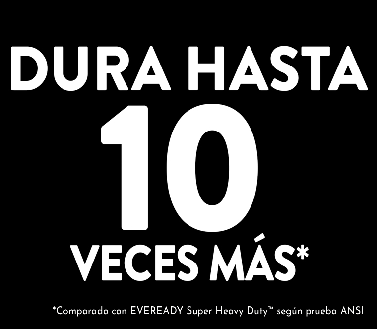 *Comparado con Eveready® Super Heavy Duty™