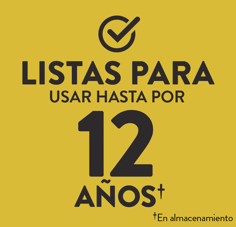 - EVEREADY GOLD® está lista para usarse hasta por 12 años en almacenamiento