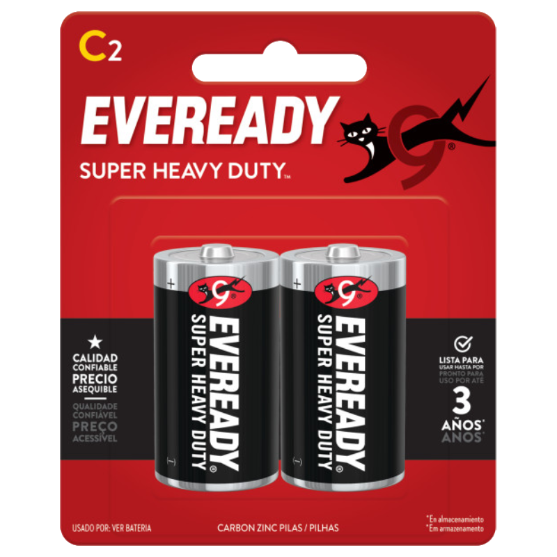 - Paquete de 2 pilas Eveready® Super Heavy Duty™ C, Carbon Zinc