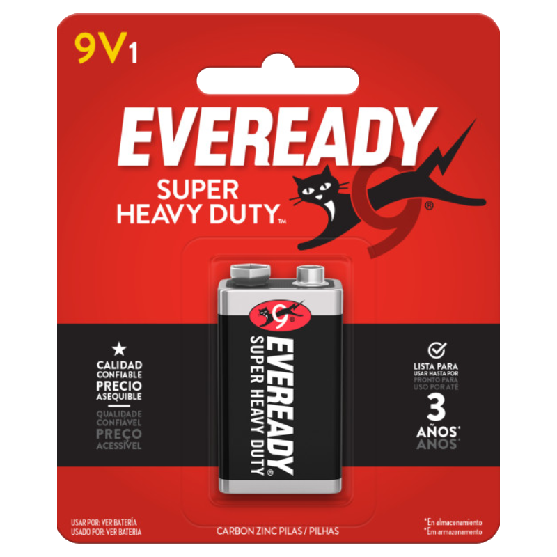 - 1 paquete con batería Eveready® Super Heavy Duty™ 9V, Carbon Zinc