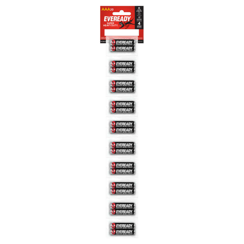 Usa Eveready para alimentar tus dispositivos de uso diario. Las pilas Eveready® Super Heavy Duty™ AAA, ofrecen una calidad confiable a un precio accesible. Las pilas cuentan con un diseño resistente a las fugas y están listas para usar hasta 4 años después de su almacenamiento. Utiliza Eveready para dar energía a los dispositivos que usas cada día.