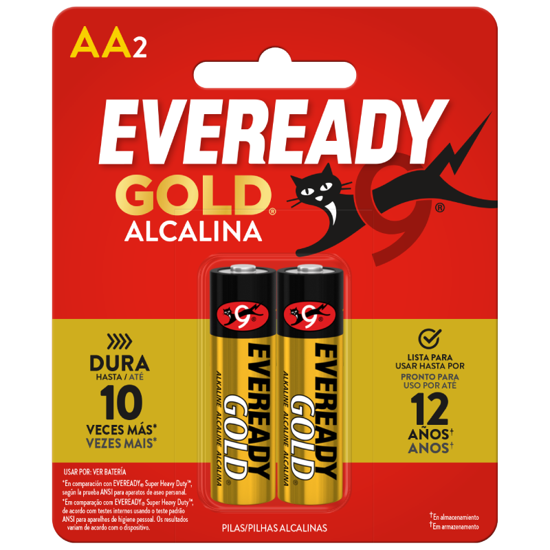 • EVEREADY GOLD® está lista para usarse hasta por 12 años en almacenamiento