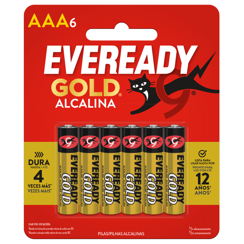 • EVEREADY GOLD® está lista para usarse hasta por 12 años en almacenamiento