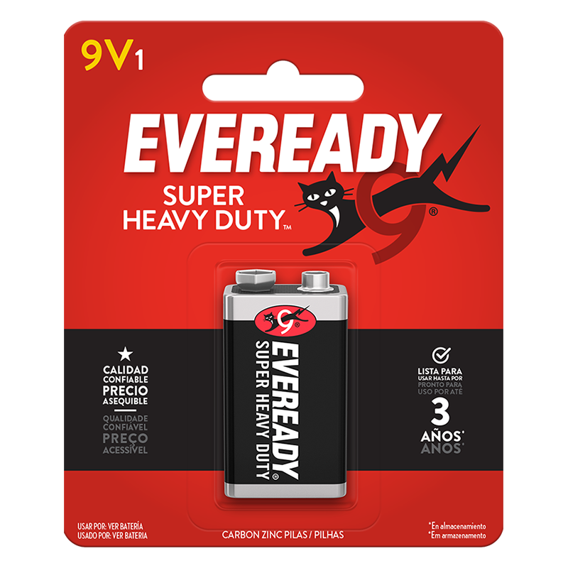 - Batería 9V Eveready® Super Heavy Duty™ de carbón-zinc, paquete de 1