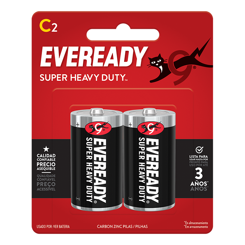 - Pilas C Eveready® Super Heavy Duty™, carbón-zinc
