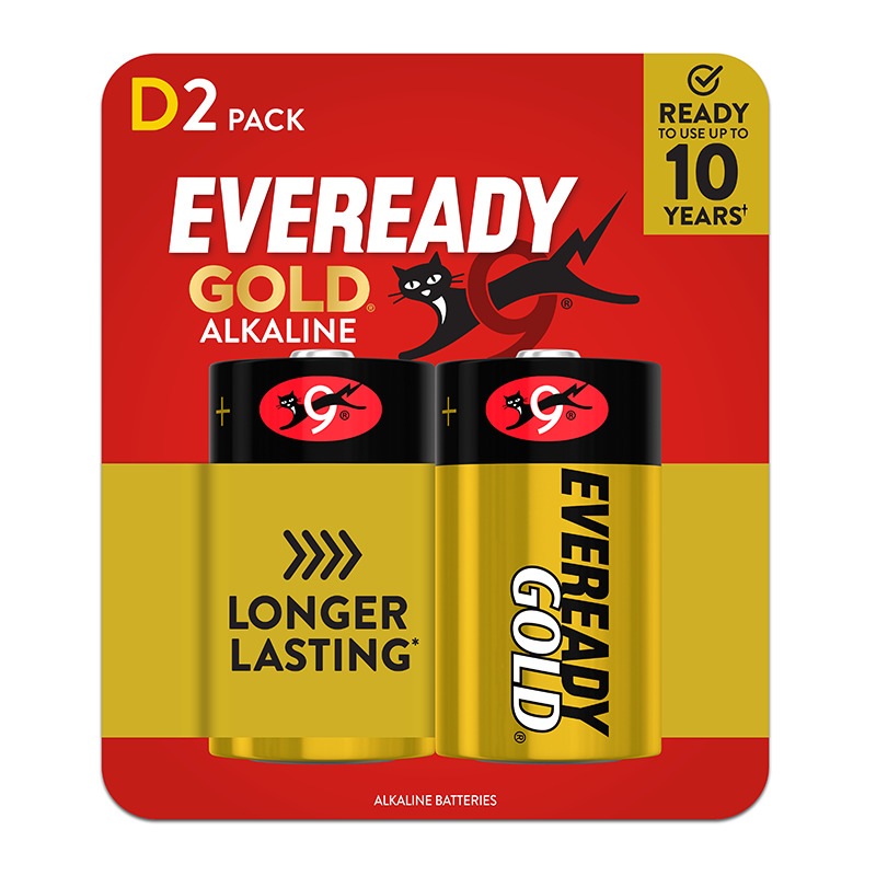 EVEREADY Gold® is the dependable solution that provides power for you and your family’s everyday power needs. EVEREADY Gold® alkaline brand offers a complete line of AA, AAA, C, D and 9v products and are ideal for low to mid-drain devices such as, remotes, radios, calculators and motor driven toys. Since 1896 EVEREADY® batteries have been providing dependable portable power. For every family, everywhere, every day. EVEREADY® for Life.​