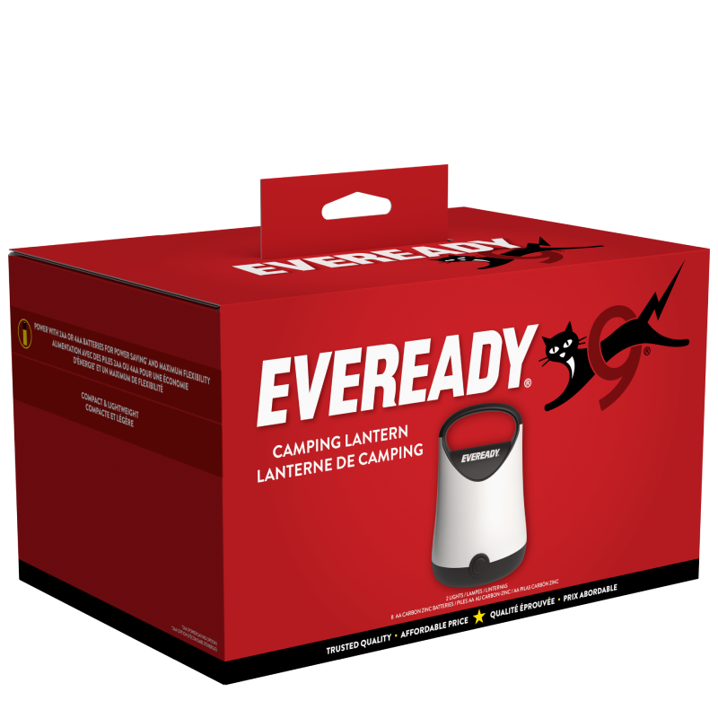 Get bright, reliable light in a compact design with this 2-pack of Eveready GPAL411 Compact LED Lanterns. The Eveready GPAL411 is a small lantern featuring the latest in LED light technology and an exceptional runtime, putting off up to 250 lumens* of bright, 360-degree area light for up to 50hrs with 4AA Carbon Zinc.** This convenient portable lantern has a top handle for easy carrying and is great as a camping lantern, an emergency light for power outages, and more. With this 2-pack, you can keep one lantern in the house and one in the garage, or give them as practical gifts to family and friends. The Eveready GPAL411 is a battery operated lantern with ReadyFlex technology for enhanced power saving; it can run on 2 AA or 4 AA batteries. Built for any adventure, this durable LED lantern is rated IPX4 water resistant and can withstand drops up to 1m.